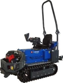 En entrée de gamme, notre chenillard viticole K65 est un dérivé de notre gamme historique « bâtiment » spécialement adapté à la viticulture.
